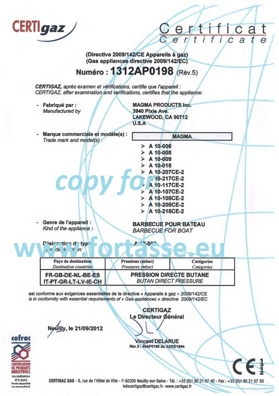pregledani in testirani s strani pooblaščene organizacije CERTIGAZ SAS Francija